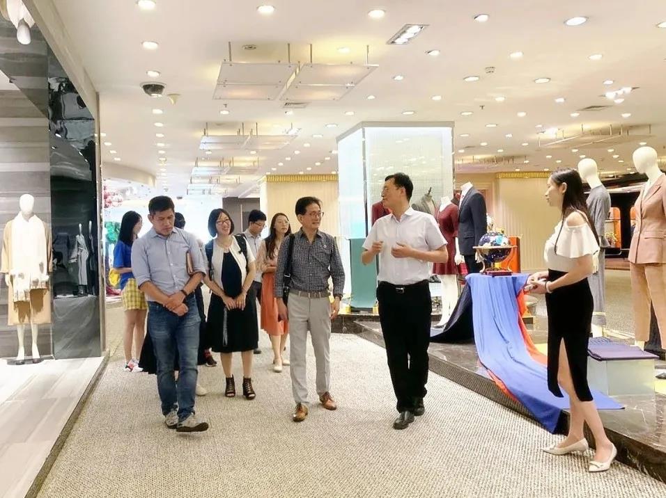 8月19日上午,团队师生们走访了位于江阴市新桥镇的阳光集团。作为江阴市纺织行业的龙头企业,江苏阳光集团有限公司是国家重点企业集团和国家重点扶持的行业排头兵。2007年,国际标准化组织/纺织品技术委员会(ISO/TC38)国际秘书处落户阳光,成为国内首家承担ISO/TC38国际秘书处工作的企业。阳光集团始终坚持以产品创新、技术创新为主导,坚持走“质量兴企”之路,将质量作为巩固品牌、强化品牌、支撑品牌、提升品牌的核心内容来抓,建立了以博士后科研工作站、国家级技术中心、国家毛纺新材料工程技术研究中心、江苏省工业设计中心为主要支撑的“一站三中心”技术创新体系,以平均每天50多个面料新品的开发能力,达到了国际先进产品研发的水平。2020年5月,中国品牌建设促进会发布了2020中国品牌价值评价信息,江苏阳光集团有限公司以品牌强度905、品牌价值234.5亿元,持续领跑中国纺织行业。