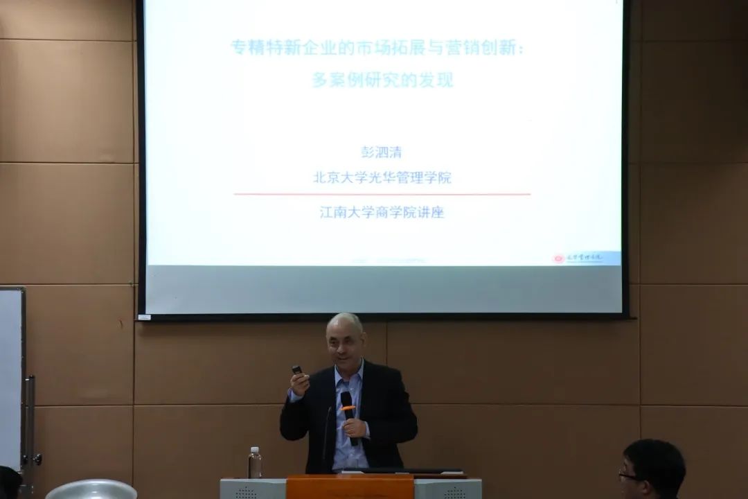 11月22日下午,北京大学光华管理学院市场营销系教授、北京大学中国低碳发展研究中心主任符国群教授;北京大学光华管理学院市场营销学系教授、北京大学新市场经济与管理研究中心主任、中国高校市场学研究会常务副会长彭泗清教授;北京大学光华管理学院市场营销系教授、光华行为科学实验室副主任徐菁教授,一行来到江南大学商学院省品牌基地发表了主题讲座。江南大学质量品牌研究院执行院长、江苏省高校哲学社会重点“品牌战略与管理创新基地”首席专家、中国高等院校市场学研究会副会长滕乐法教授对各位教授的到来表示热烈欢迎。江南大学商学院市场营销系系主任马振峰教授主持了本次讲座,质量品牌研究院、品牌战略与管理创新基地全体师生,商学院市场营销系本科生和教师等参加了本次讲座。