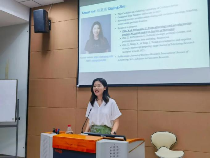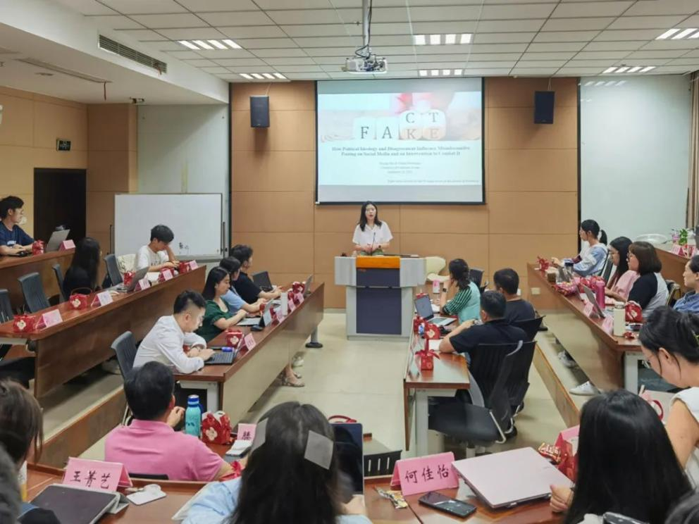 本次报告在商学院118报告厅举行,祝夏菁师姐首先对她自己的文章“How Political Ideology and Disagreement Influence Misinformation Posting on Social Media and an Intervention to Combat It”做了主题汇报,主要内容为意识形态对于社交媒体上传播假消息的影响。文章为研究哪些消费者积极传播错误信息,传播的时间及原因,共进行了五项实验,用了二手数据,实验和文本数据三种方法,调查political ideology和the context of political discourse如何影响社交媒体上politically misinformation的发布。祝夏菁师姐的文章得到了基地老师和同学的一致认可与赞扬,并引发了基地老师和学生的热烈讨论,值得庆贺的是,该文章正在经历Journal of Marketing的第三轮review, 老师们也呼吁各位同学向优秀师姐学习。