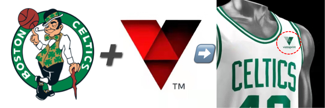 丰田汽车公司是NBA火箭队的赞助商,其与火箭专属的颜色相一致的红色logo深深地烙印在了每一个火箭球迷的心中。Vistaprint作为凯尔特人的赞助商时,品牌在球队服装上的logo颜色就随凯尔特人的logo颜色进行了修改,变成了绿色。这类例子还有很多。